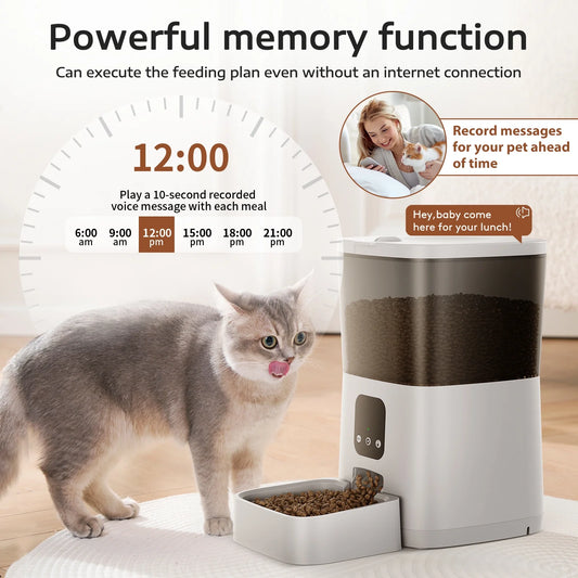 7L Automatic Smart Food Dispenser Pet Feeder, Wi-Fi Timed with APP Remote Feeding for Cats and Dogs White 13.10 X 6.50 X 12.60 In